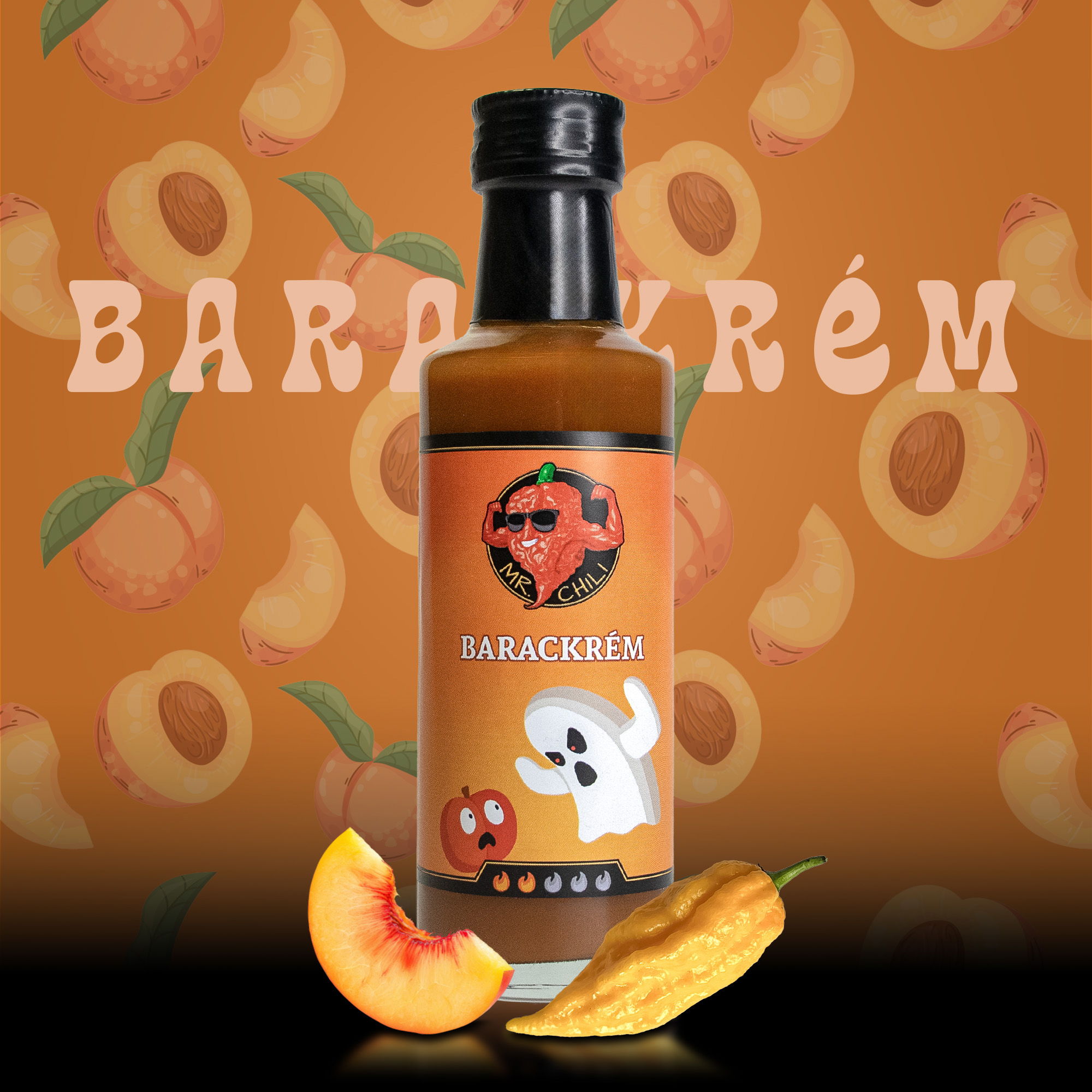 Zamatos sárgabarack és lángoló Bhut Jolokia nászából született a palackba zárt, barátságos szellem, a Barackrém. Gyümölcsösségével elvarázsol, majd tüzességével enyhén fejbe kólint. Barackos húsok és sült csirkés ételek megbolondításához igazán jó választás.